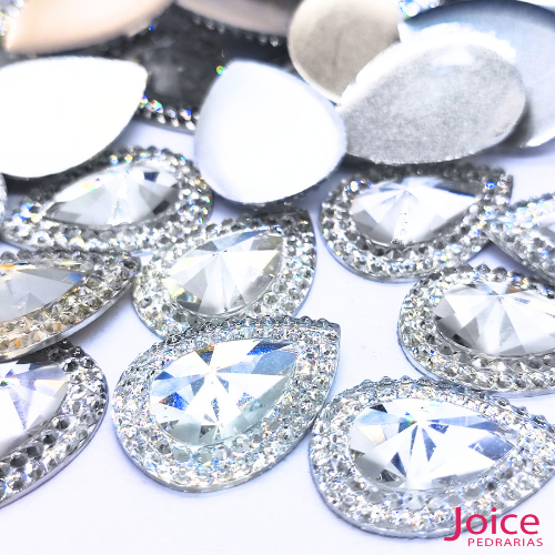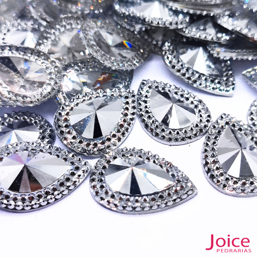 Chaton Engrampado De Vidro Gota (Base Prata) 13mm x 18m C/300-unidades